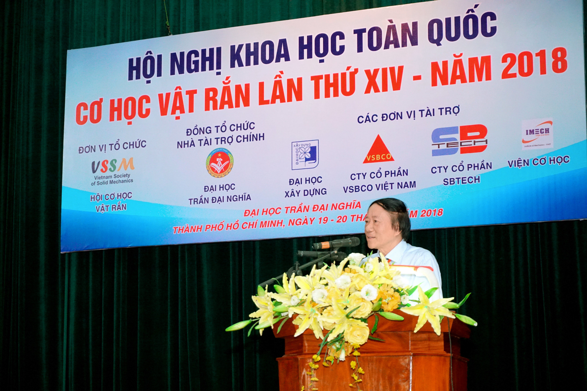 Tại phiên khai mạc, GS.TS. Trần Ích Thịnh – Chủ tịch Hội Cơ học vật rắn đã phát biểu khai mạc Hội nghị và điểm lại những thành quả đạt được của Hội Cơ học vật rắn trong thời gian vừa qua. Đại diện cho đơn vị đồng tổ chức – nhà tài trợ chính, Thiếu tướng PGS.TS. Nguyễn Văn Hưng – Hiệu trưởng Trường Đại học Trần Đại Nghĩa đã phát biểu chào mừng Hội nghị, khẳng định Nhà trường sẽ quyết tâm cùng với Hội Cơ học Vật rắn tổ chức thành công Hội nghị.