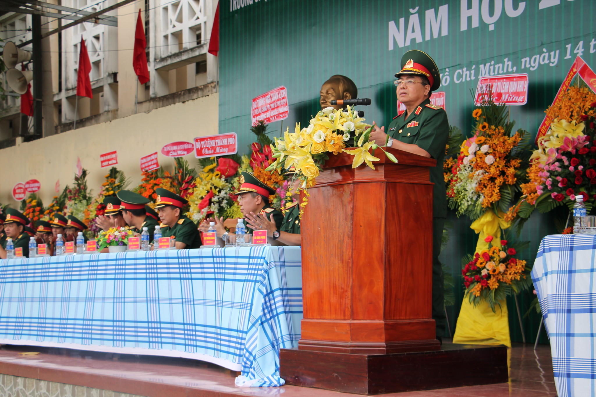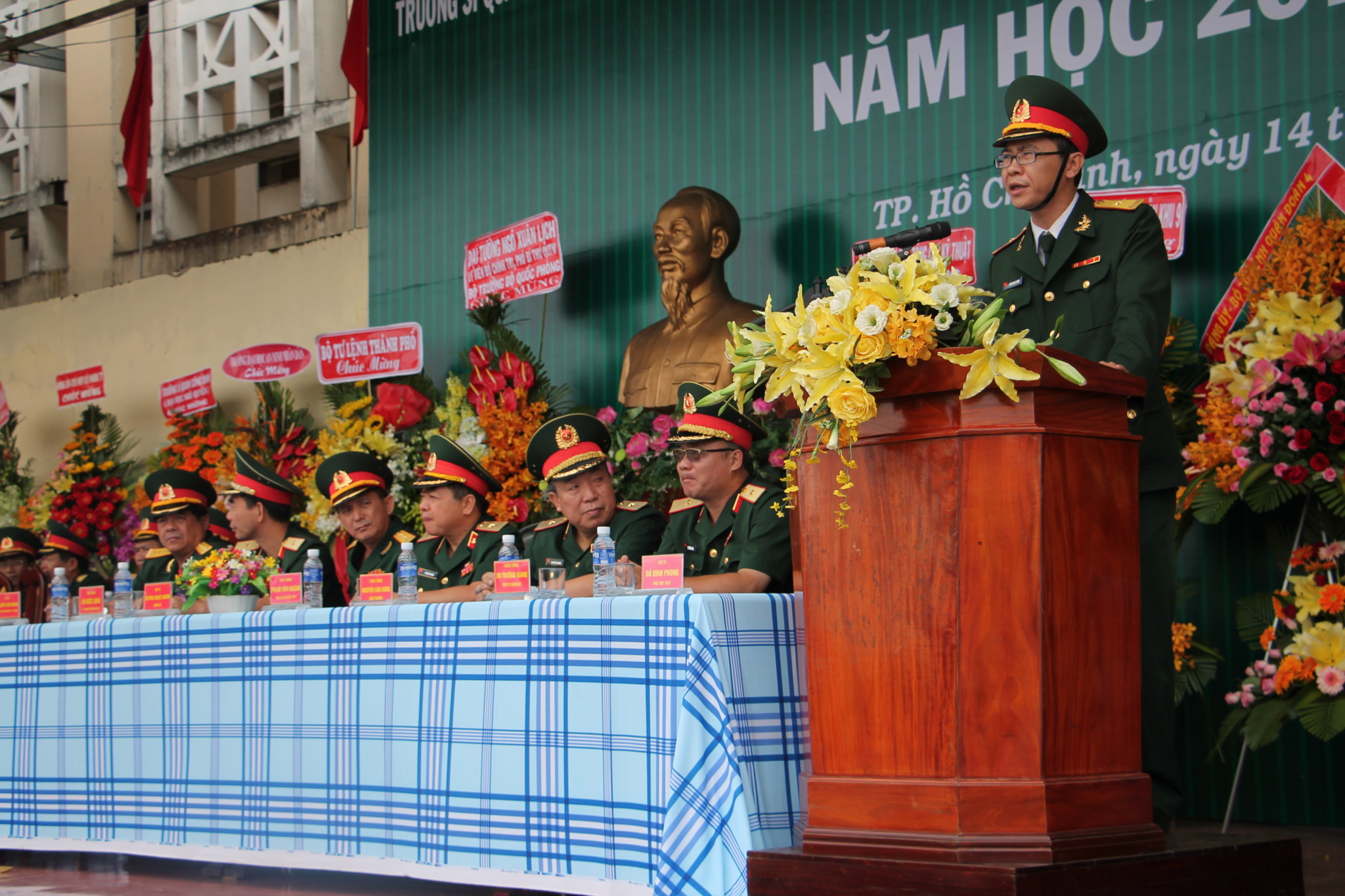 Đại tá Huỳnh Ngọc Nhâm – Chính ủy Nhà trường phát biểu trong lễ khai giảng