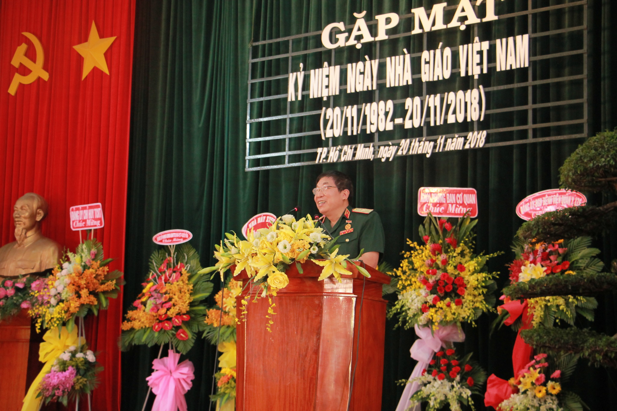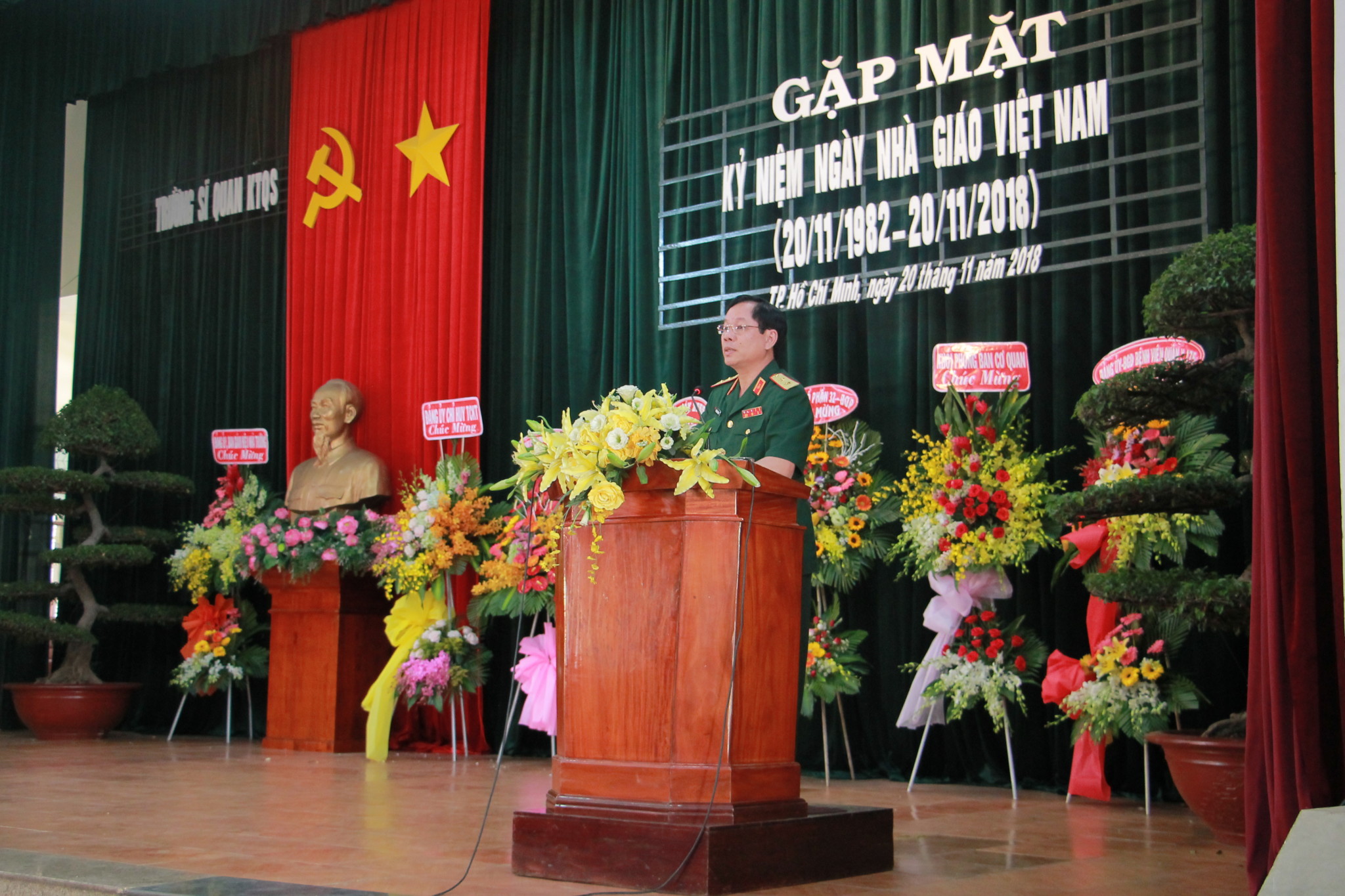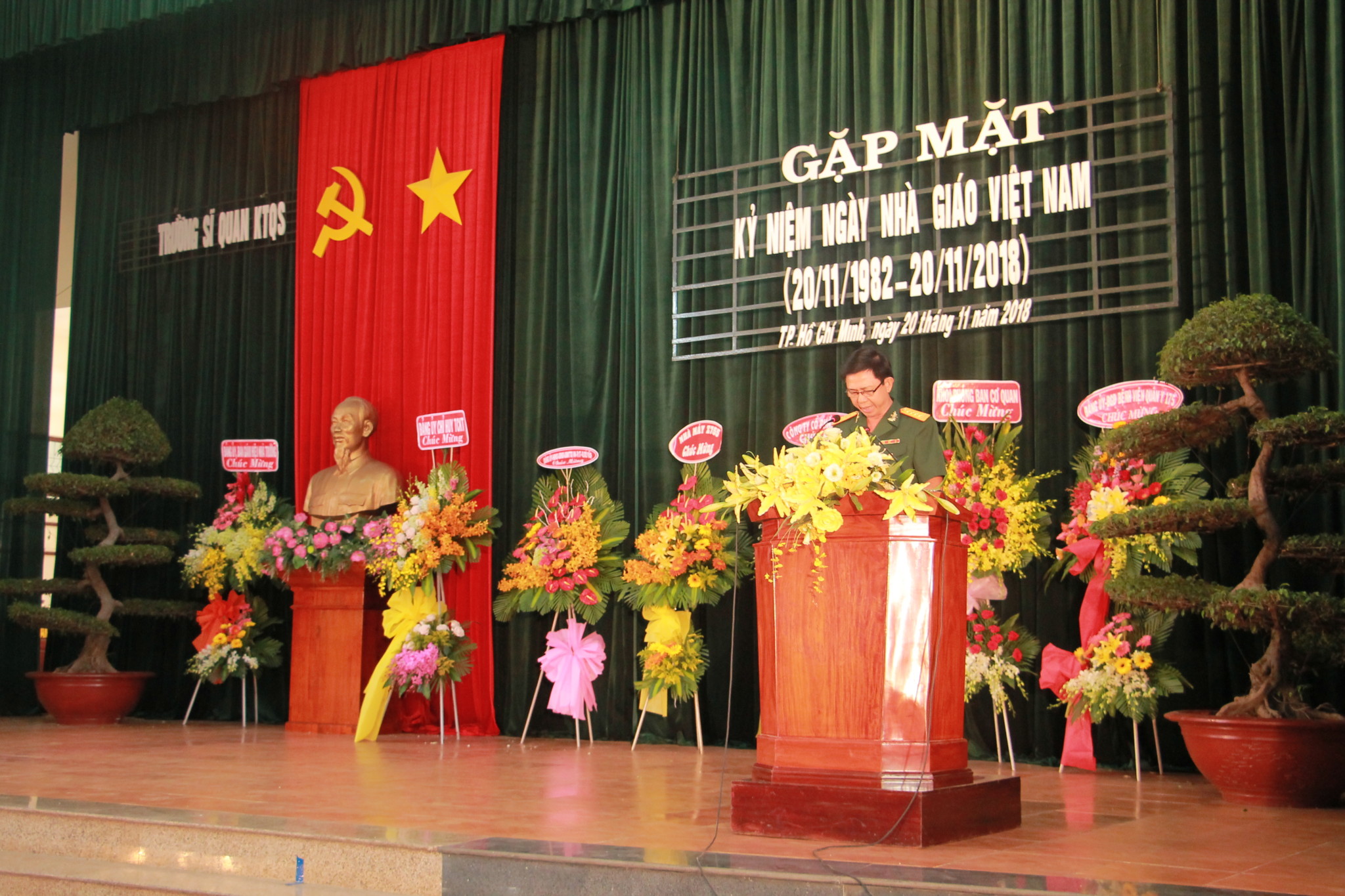 Tại buổi gặp mặt, Đại tá Lê Văn Cường – Chủ nhiệm Chính trị Nhà trường đọc thư của Bộ trưởng BQP Ngô Xuân Lịch gửi các nhà giáo quân đội nhân ngày Nhà giáo Việt Nam 20/11