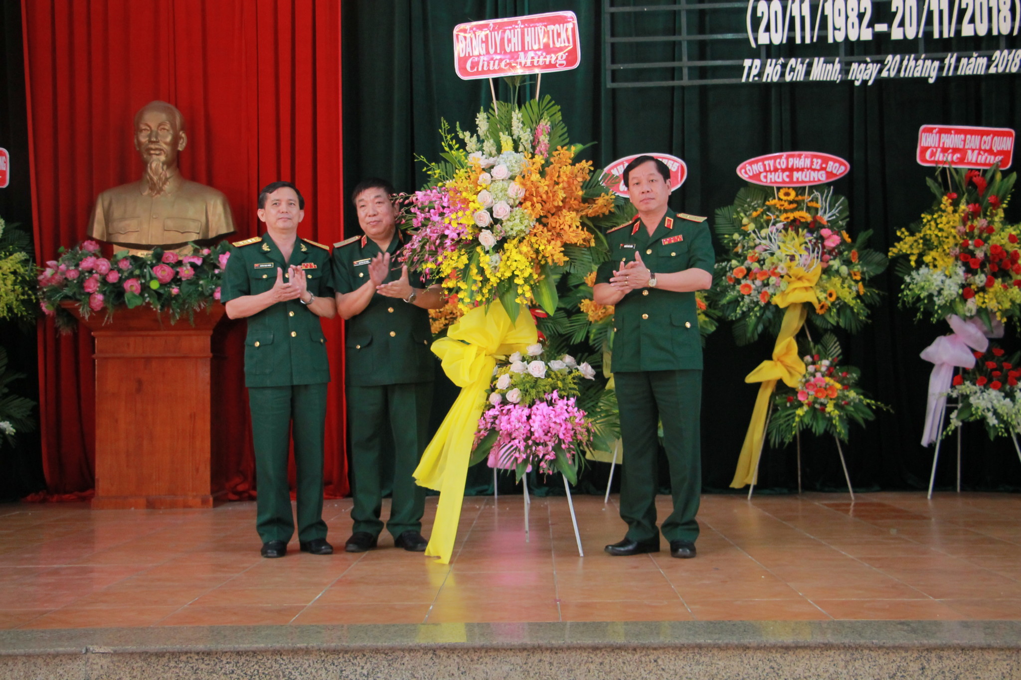 Trung tướng Nguyễn Hữu Chính – Bí thư Đảng ủy, Chính ủy Tổng cục Kỹ thuật đã tặng hoa và phát biểu chúc mừng, ghi nhận và đánh giá cao những thành tích của Nhà trường trong thời gian qua và đặt ra những yêu cầu mới cho đội ngũ nhà giáo, cán bộ quản lý giáo dục để đưa Nhà trường tiếp cận kịp thời cuộc cách mạng công nghiệp lần thứ Tư.