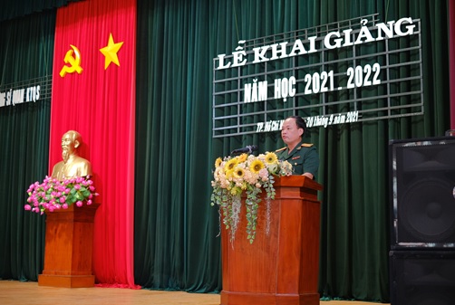 Đại tá Trần Hồng Thanh, Hiệu trưởng Nhà trường phát biểu diễn văn khai giảng năm học 2021-2022