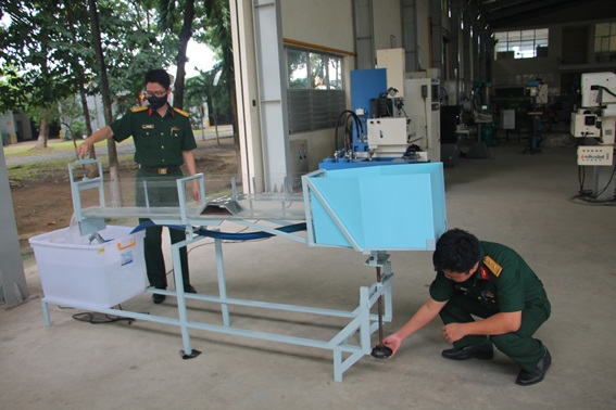 - Đề tài cấp cơ sở “Nghiên cứu, thiết kế, chế tạo đồ gá khoan phân độ tự động” do Thiếu tá, ThS Lê Thanh Quan chủ nhiệm đề tài. Đề tài đã thực hiện đầy đủ các nội dung so với yêu cầu nhiệm vụ được giao, sản phẩm có chất lượng, ý nghĩa thực tiễn và có giá trị khoa học trong nghiên cứu, thiết kế, chế tạo các thiết bị phụ trợ đi kèm bổ sung để khai thác, sử dụng hiệu quả các máy móc trang bị thiết bị phục vụ giảng dạy và thực hành các môn KTCS tại Nhà trường, tuy nhiên còn nhiều lỗi chính tả và cần bổ sung sơ đồ điện động lực, thông số kỹ thuật. Sơ đồ nên được gắn lên thiết bị phục vụ công tác vận hành, sửa chữa. Hội động đánh giá đạt mức Khá.