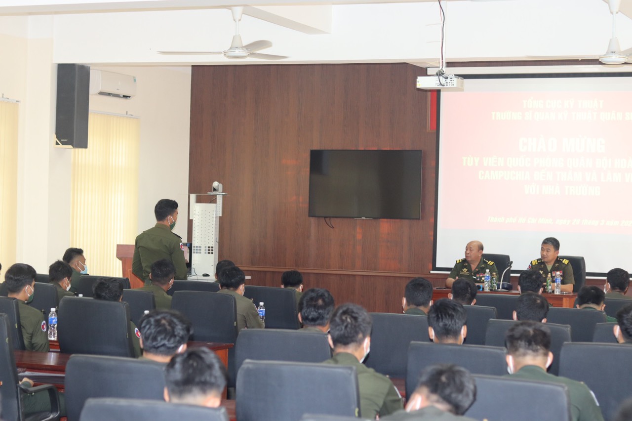 Sáng ngày 26/3/2022, Đoàn Tùy viên Quân sự Campuchia do Đại tá Rem Kann làm trưởng đoàn đã đến thăm và làm việc với Trường Sĩ quan Kỹ thuật quân sự.