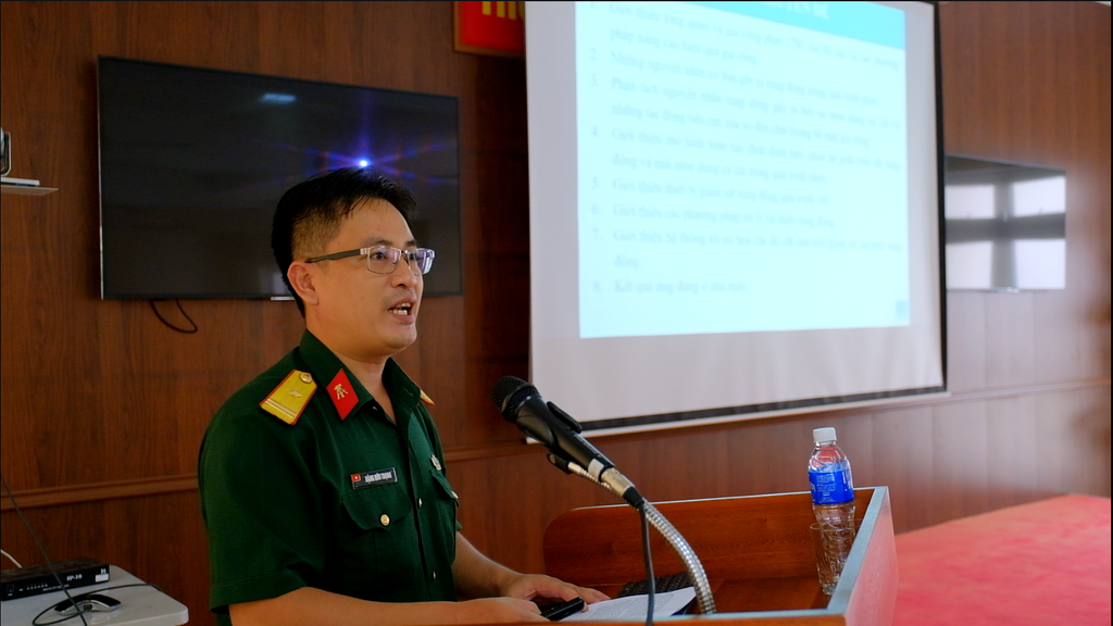 Tại buổi Hội nghị đ/cThiếu tá, TS Đặng Hữu Trọng đã giới thiệu, chia sẻ một số thông tin mang tính ứng dụng cao, sâu rộng. Nội dung báo cáo chuyên đề bao gồm: