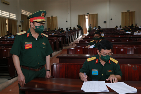 Trung tá Lê Ngọc Quyền, Chủ nhiệm Kỹ thuật Sư đoàn 5, Quân khu 7 thực hiện phần thi nhận thức.