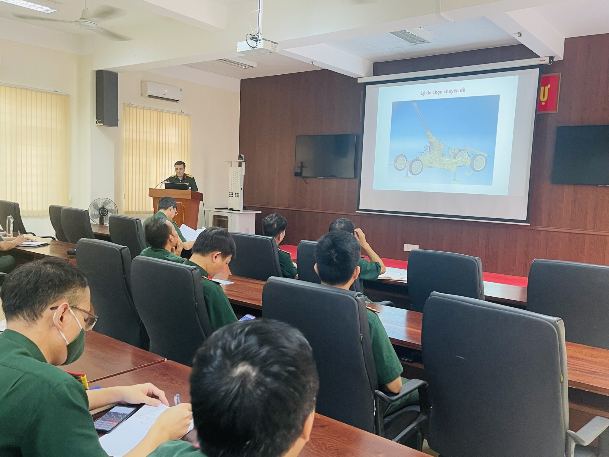 Chiều ngày 15/6/2022, Tại Phòng Hội nghi trực tuyến, Ban Khoa học Quân sự phối hợp cùng Khoa Vũ Khí đã tổ chức Hội nghị thông tin chuyên đề “Nghiên cứu ảnh hưởng một số thông số của hai thân pháo đến chuyển động của pháo phòng không hai nòng 37mm K65-2 khi bắn” do đ/c Trung tá, TS Mai Anh Quang – TBM Vũ Khí phòng không, Khoa Vũ Khí báo cáo.