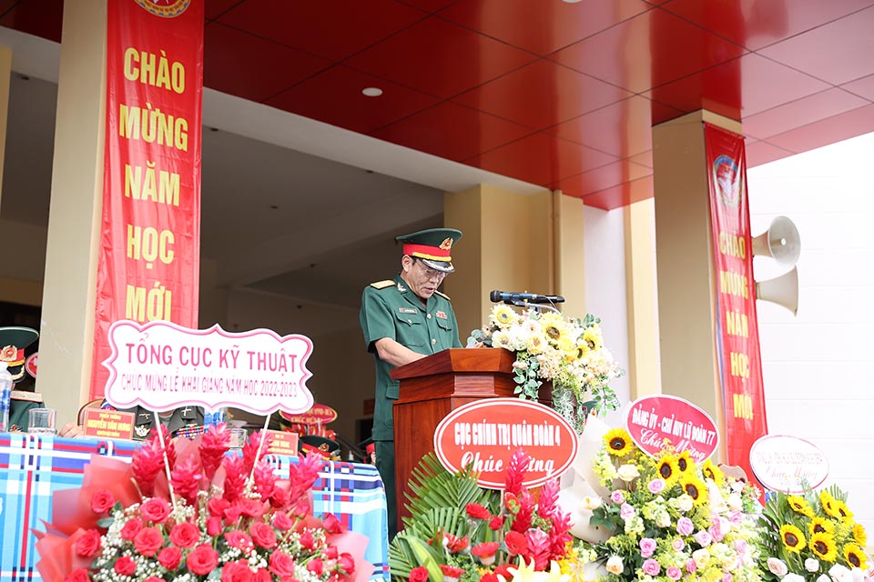 Phát biểu chỉ đạo tại lễ khai giảng, Thiếu tướng Phùng Ngọc Sơn Phó chủ nhiệm, TMT Tổng cục Kỹ thuật biểu dương những kết quả mà Nhà trường đã đạt được trong năm học 2021-2022. Đồng thời quán triệt một số nhiệm vụ trọng tâm trong năm học 2022-2023 của Trường Sĩ quan Kỹ thuật quân sự là giữ vững và nâng cao chất lượng GD-ĐT; tiếp tục quy hoạch mặt bằng doanh trại, đầu tư nâng cấp cơ sở vật chất kỹ thuật, xây dựng Nhà trường chính quy, VMTD “mẫu mực, tiêu biểu”, sẵn sàng nhận và hoàn thành các nhiệm vụ do Bộ và Tổng cục giao. Để thực hiện tốt nhiệm vụ đó Nhà trường cần lưu ý những vấn đề sau: