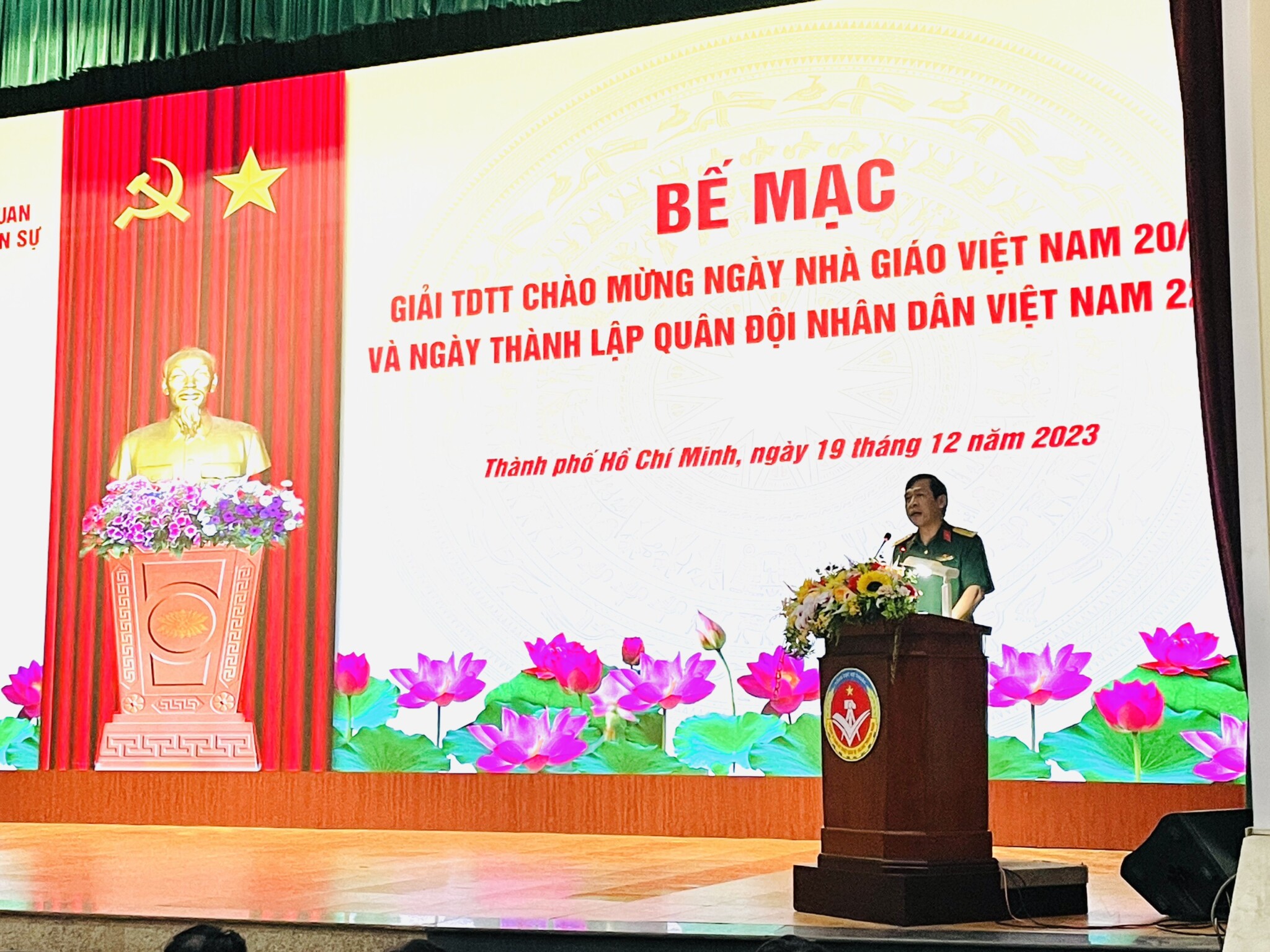 Phát biểu tại Lễ bế mạc, Đại tá Nguyễn Đức Phương, Phó Hiệu trưởng Nhà trường, đã đánh giá cao kết quả và ý nghĩa của giải thể dục thể thao, ghi nhận và khen ngợi những nỗ lực và thành công của các vận động viên, đồng thời nhấn mạnh tầm quan trọng của việc rèn luyện thể chất, nâng cao sức khỏe, phát huy tinh thần thể thao trong quân đội. Thủ trưởng cũng đã đề nghị các đơn vị tiếp tục duy trì và phát triển các hoạt động thể dục thể thao, tạo điều kiện cho cán bộ, giảng viên và học viên, chiến sĩ tham gia đầy đủ và hiệu quả, góp phần nâng cao chất lượng đào tạo, nghiên cứu và hoàn thành nhiệm vụ của nhà trường.