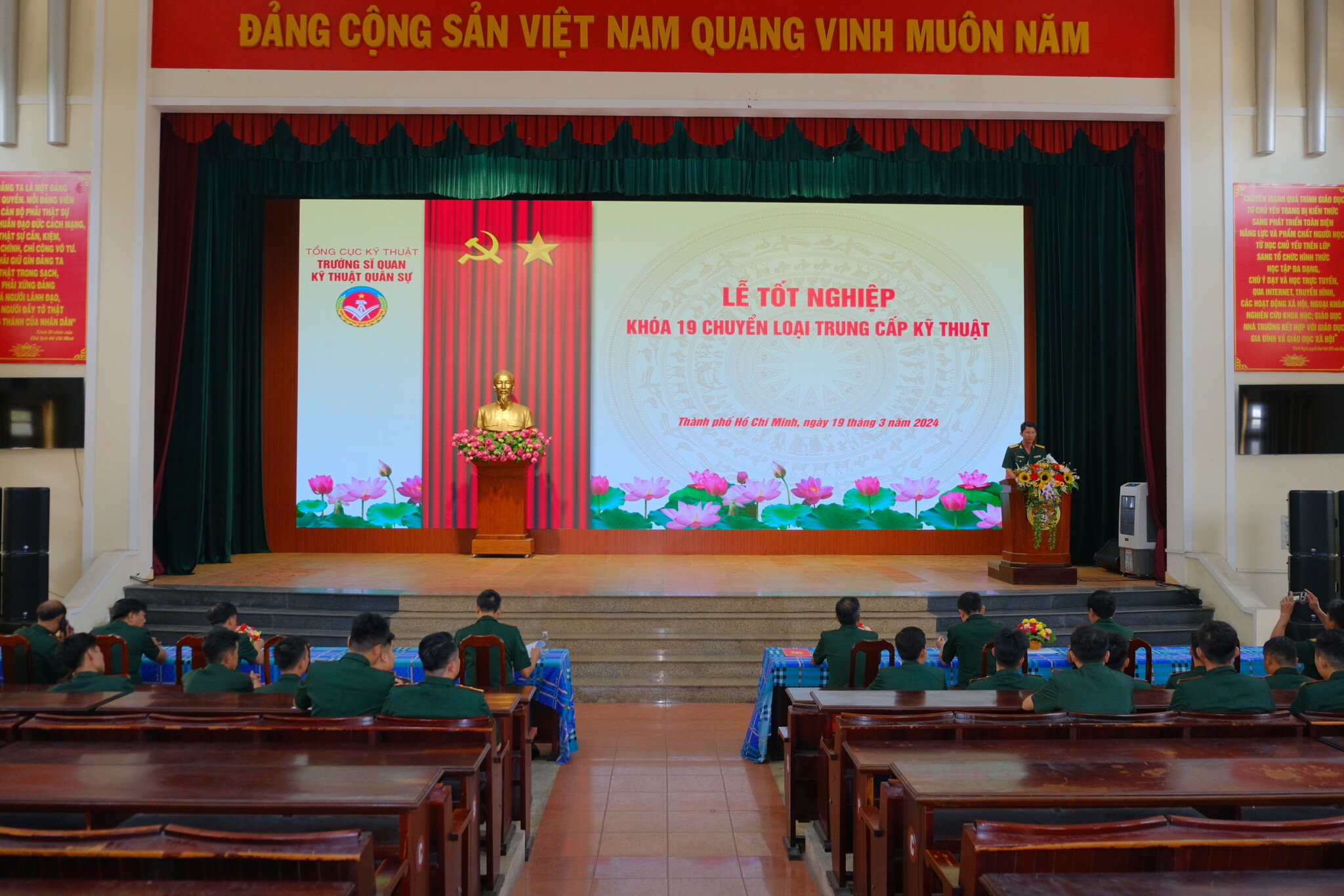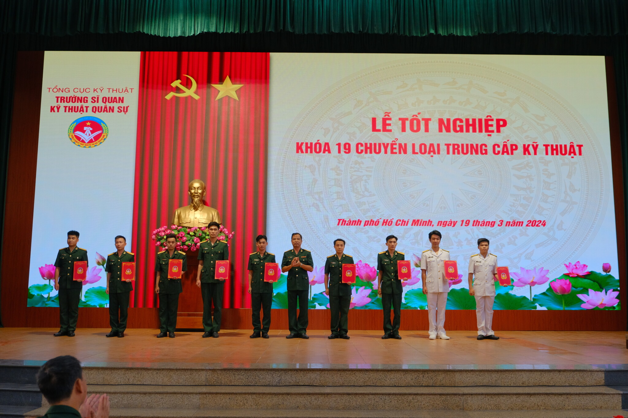 Sáng ngày 19 tháng 3 năm 2024, Trường Sĩ quan Kỹ thuật Quân sự đã long trọng tổ chức lễ tốt nghiệp cho học viên chuyển loại trung cấp khóa 19. Buổi lễ diễn ra tại Hội trường lớn của nhà trường, đồng chí Đại tá, PGS, TS Lương Hồng Sâm – Phó Hiệu trưởng nhà trường chủ trì, tới dự buổi lễ còn có đại diện các cơ quan, đơn vị, các khoa chuyên ngành.